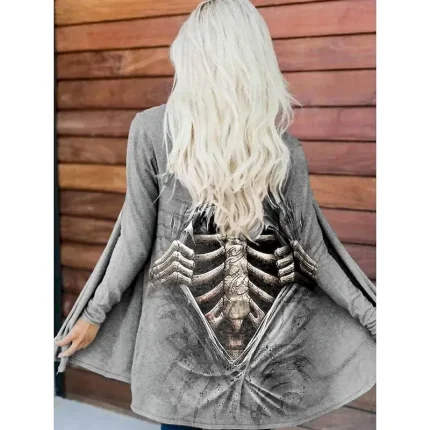Women’s Coat Lightweight Comfortable Print Vintage Fashion Artistic Casual Skull Casual Long Collarless Regular Fit Long Sleeve Outerwear Black White Orange Spring Fall