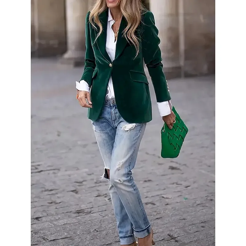 Women’s Blazer Comfortable Breathable Pocket Casual Plain Office Street Casual Daily Wear Single Breasted Regular Turndown Regular Fit Long Sleeve Outerwear Navy Black Wine Spring Fall