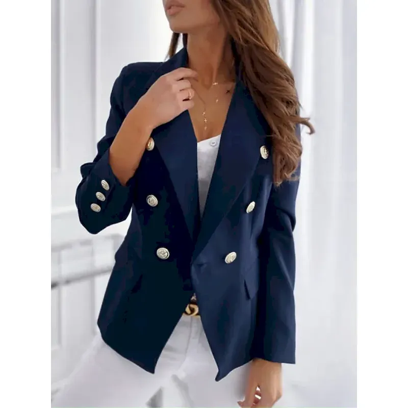 [Size Range]: Available in a wide range of sizes from S to 3XL, this blazer caters to various body types, providing a comfortable and flattering fit for every woman. Choose from classic colors such as Blue, Black, Red, Pink, and Apricot to suit your personal style.