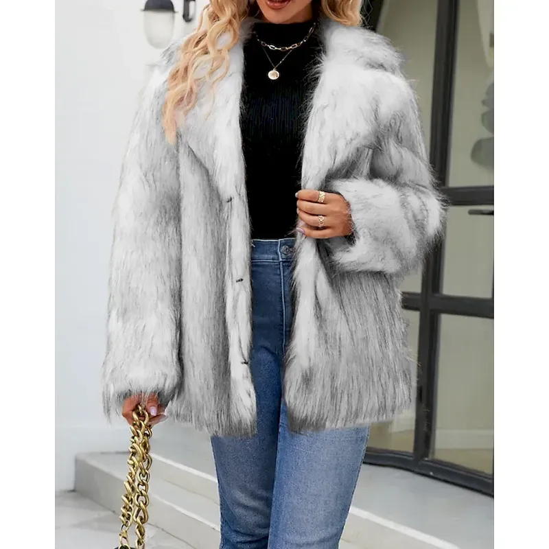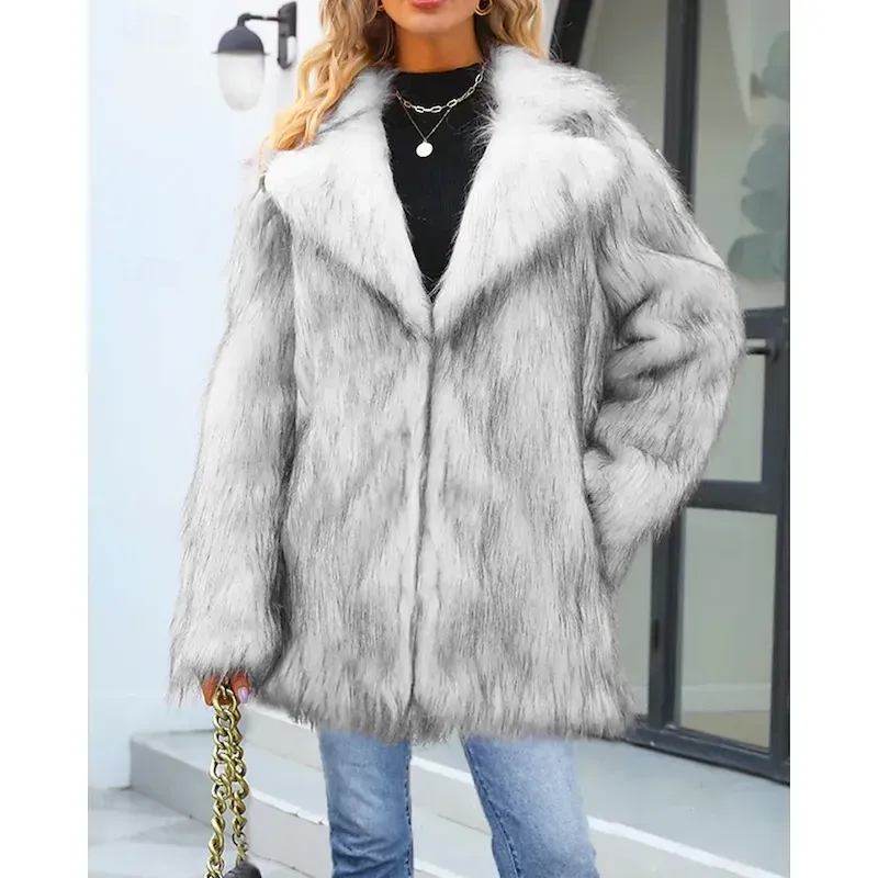 Women’s Coat Faux Fur Coat Warm Comfortable Furs & Leathers Fashion Tie Dye Vacation Street Going out Weekend Long Turndown Regular Fit Long Sleeve Outerwear Light Grey Fall Winter