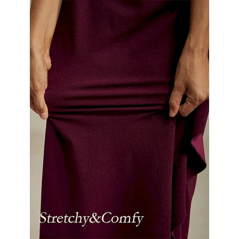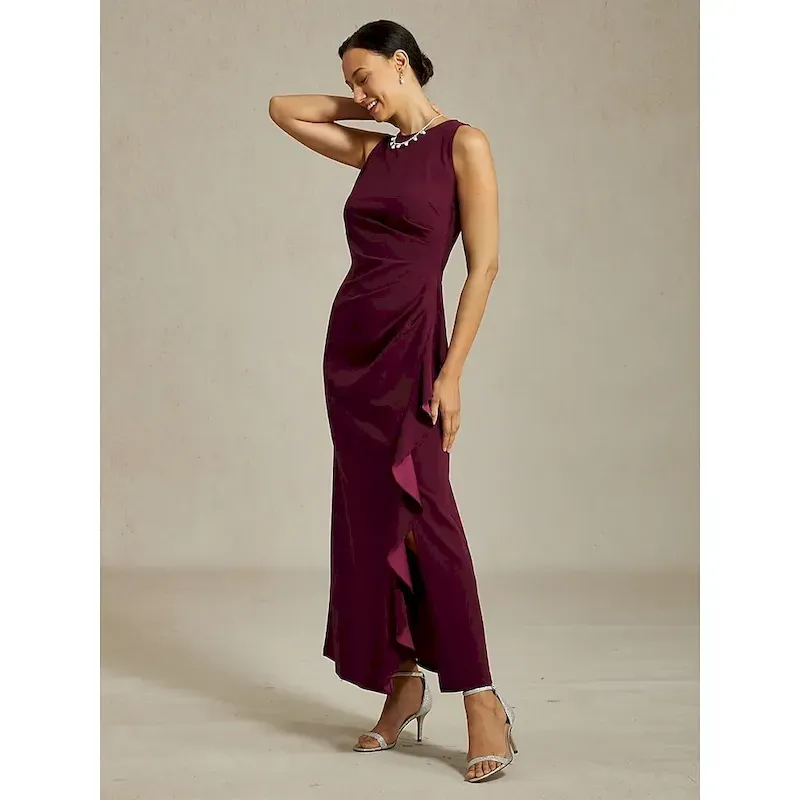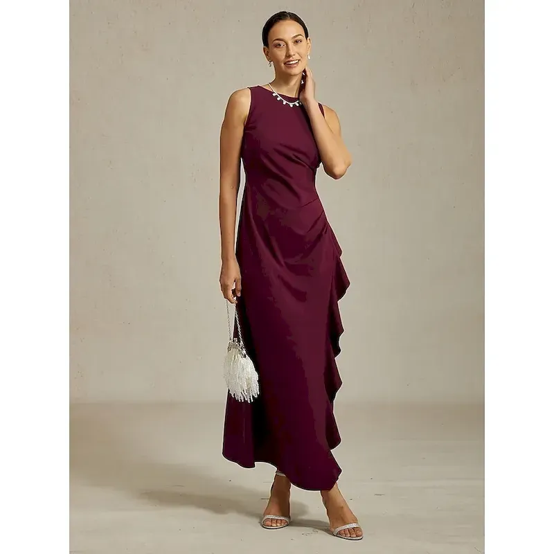 Women’s Maxi Dress Sheath Dress Pleated Dress Ruffle Dress Elegant Party Semi Formal Wedding Guest Evening Party Graduation Solid Color Sleeveless Crew Neck Boat Neck Burgundy Summer Spring Fall