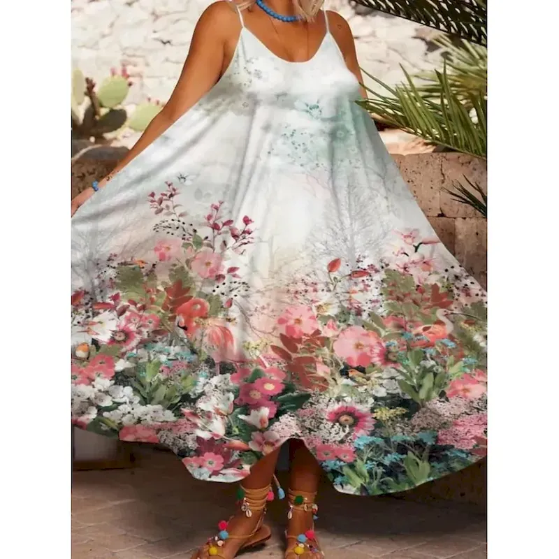 Women’s Midi Dress Sundress Summer Dress Slip Dress Fit And Flare Dress Vacation Casual Boho Cold Shoulder Vacation Party Casual Oversized Floral Graphic Sleeveless Strap White Light Green Light