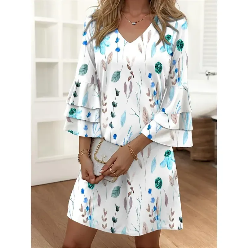 Women’s Mini Dress Casual Dress Semi Formal Dress Petite Dress Sundress Streetwear Ruffle Sleeve Vacation Street Date Regular Fit Floral 3/4 Length Sleeve V Neck Pink Blue Purple Summer