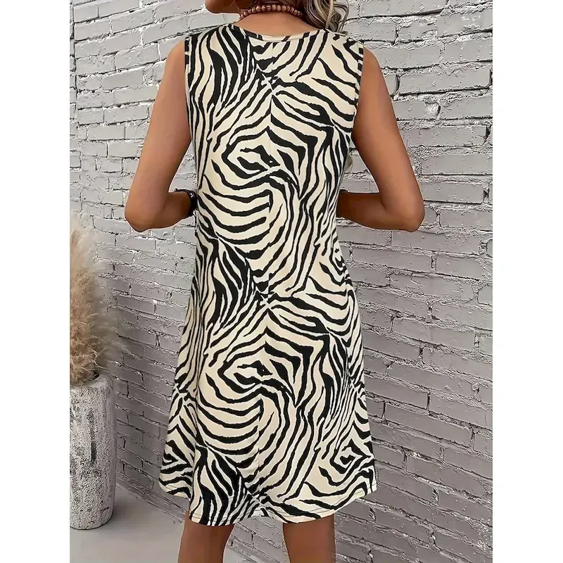 Women’s Mini Dress Sundress A Line Dress Summer Dress Vacation Casual Daily Loose Fit Graphic Geometric Sleeveless U Neck Brown Summer