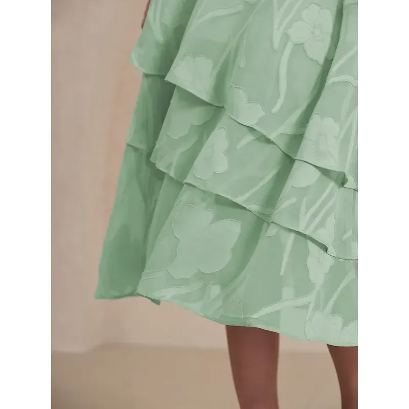 Women’s Skirt Elegant Midi Mid Waist Skirts Floral Layered Inelastic Party Causal Sage Green Summer Chiffon
