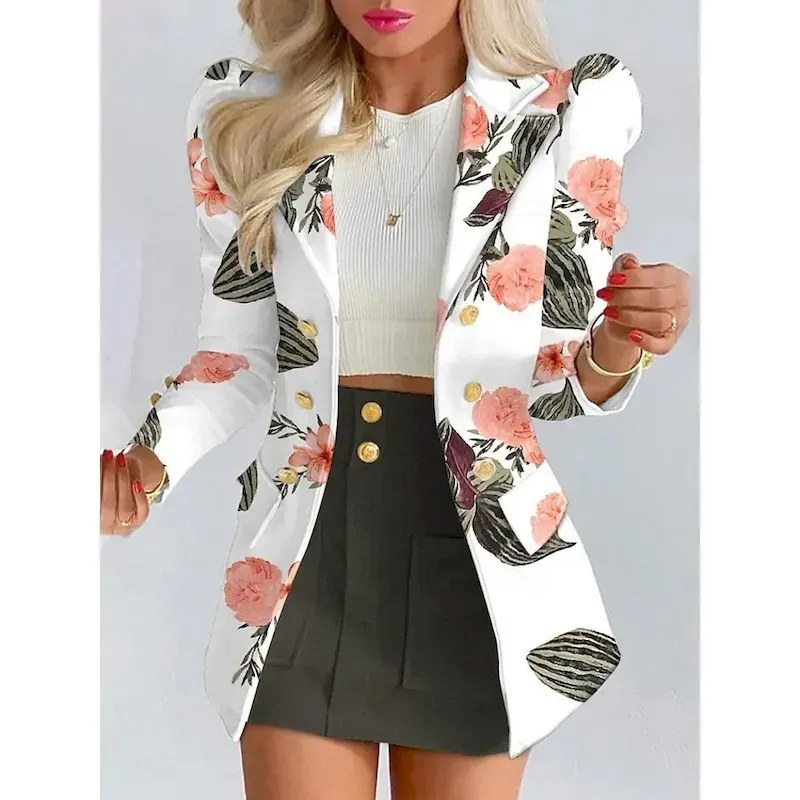 Women’s Suits Blazer Comfortable Breathable Pocket Print Fashion Casual Floral Office Street Casual Daily Wear Single Breasted Short Turndown Regular Fit Long Sleeve Outerwear Black White Yellow