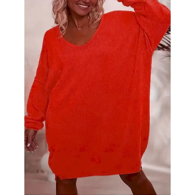 Women’s Sweater Dress Daily Stylish Basic Pure Color Fuzzy V Neck Knitted Long Sleeve Regular Tops Knit Outdoor Daily Red Fall Winter